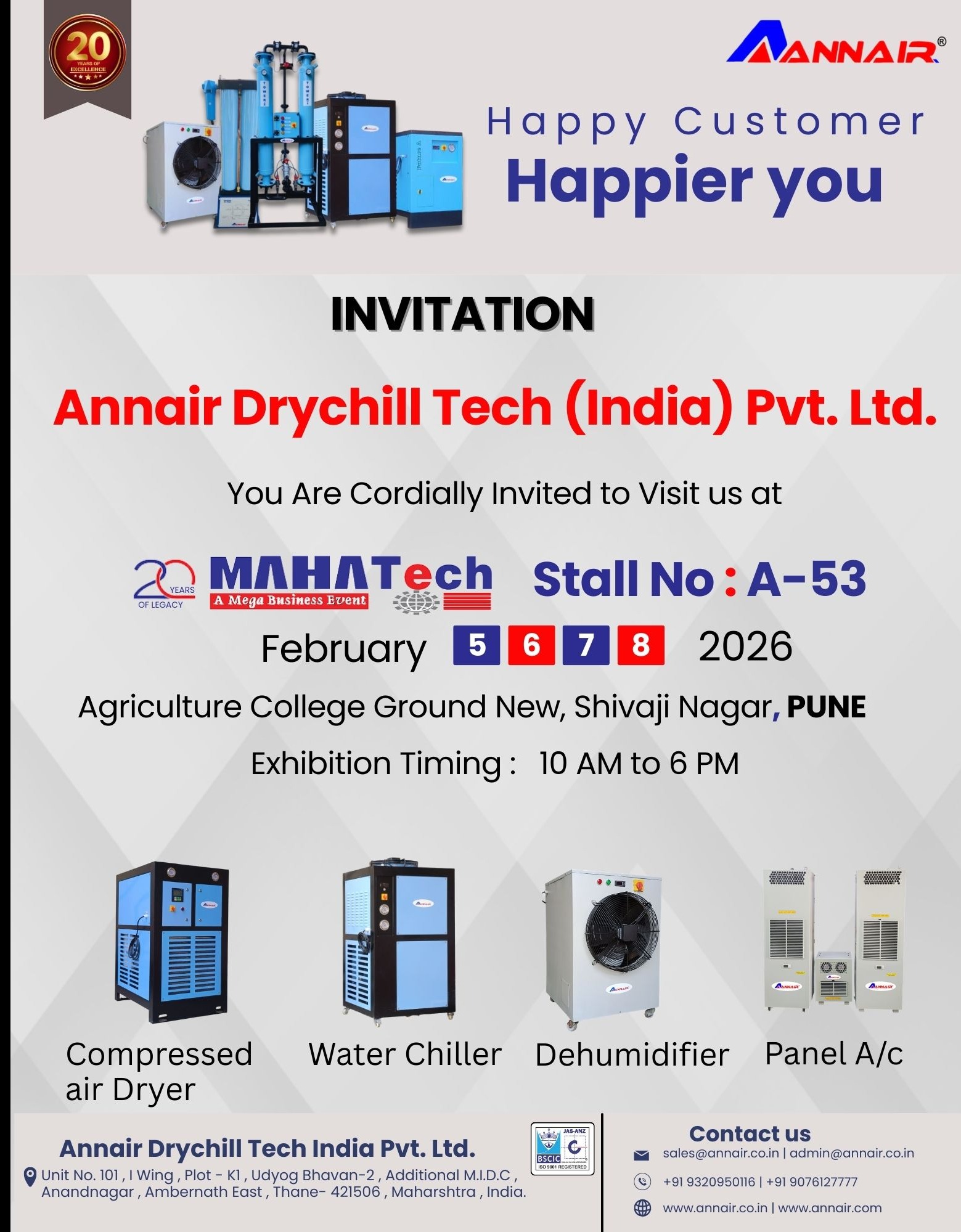 Annair Drychill Tech India Pvt. Ltd. is delighted to announce our participation in MAHATech 2026—A Mega Business Event, one of India’s leading industrial exhibitions.