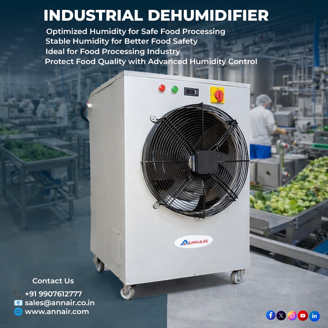 The food processing industry requires strict environmental control to maintain product quality and hygiene. One of the most important factors is humidity control. Excess moisture in the air can cause product spoilage, microbial growth, condensation, and packaging problems.